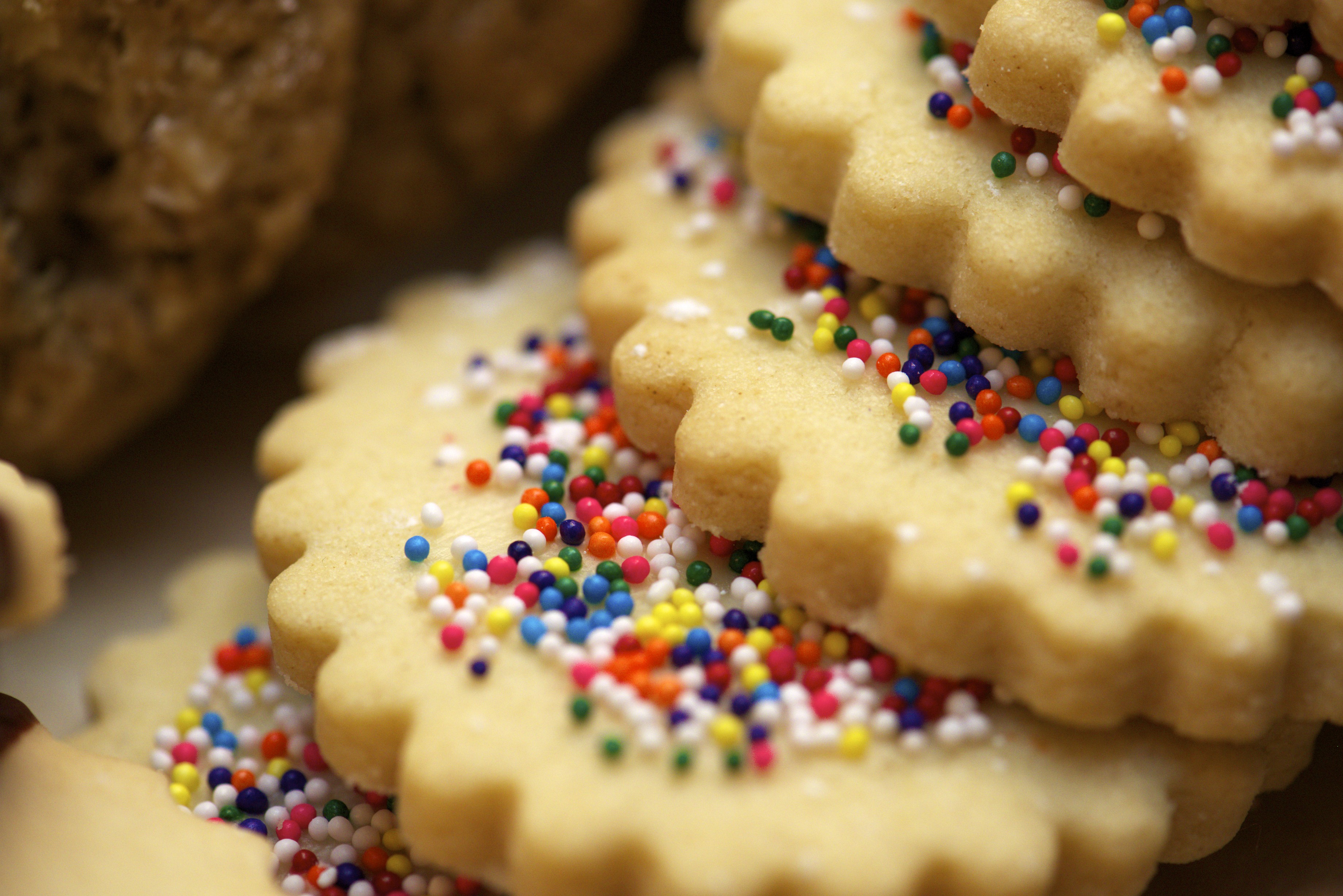 - Mix 1 1/2 cup of confectioner sugar with 2 tablespoons of milk to make icing. Spread small amount of icing on cookie. Place sprinkles on a flat plate. Press iced cookie into sprinkles.