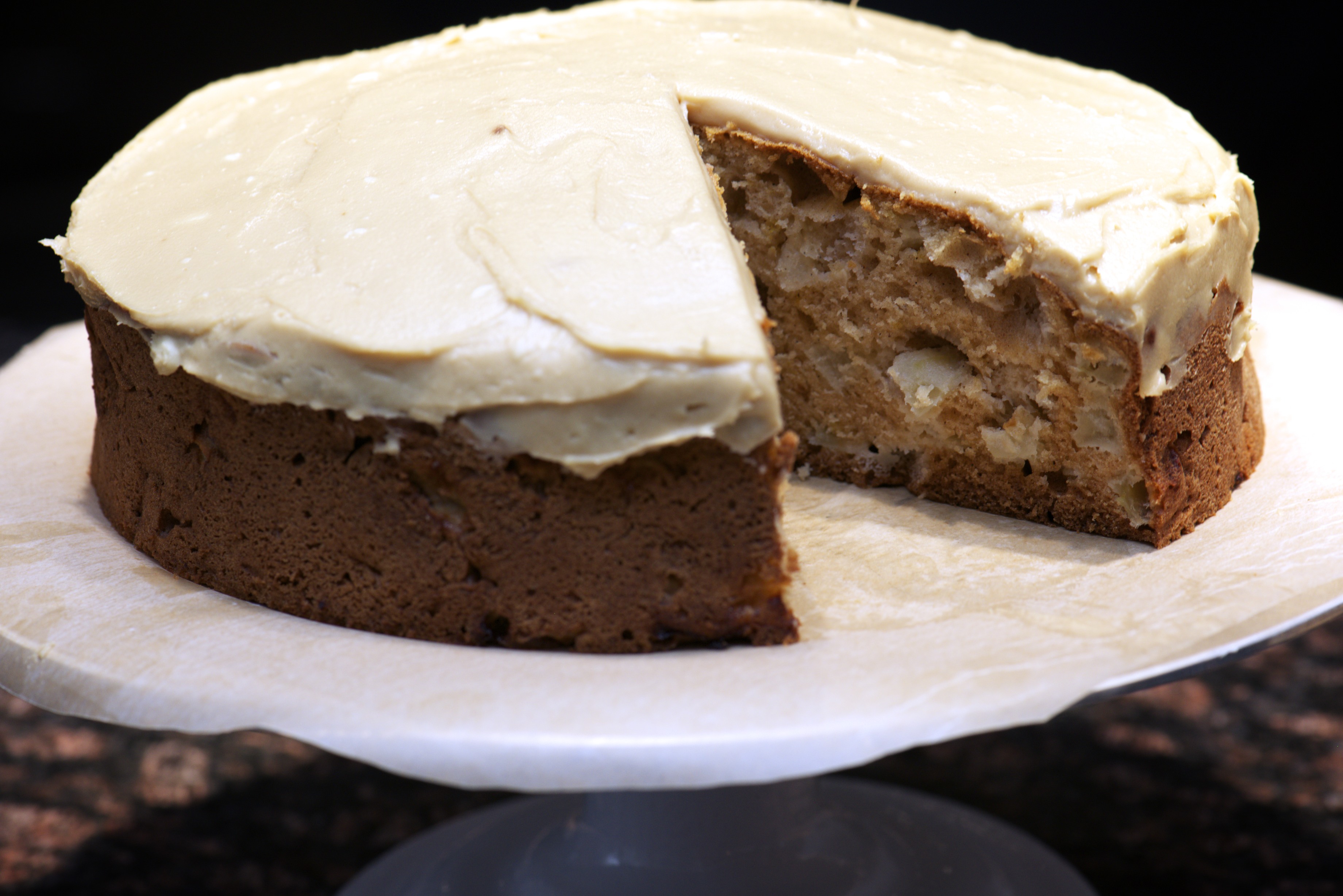 APPLE AND OLIVE OIL CAKE WITH MAPLE ICING